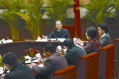 温总理主持2月4日的基础教育座谈会。 新华社 发