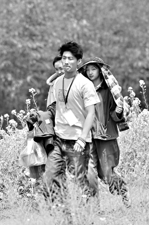 | 张艺谋是现场最大的腕 这是一场群戏,大约有十个左右的演员,其中包括李雪健扮演的张村长、成泰燊扮演的老师。这两个算是昨日在片场最大牌的演员了,不过并没有太多当地人认出两位。 李雪健扮演的张村长,穿着中式的布褂子,大包小包地帮同学们拿着行李,满面笑容。而成泰燊扮演的老师和一个女同学走在最后,他穿着当时最普通的蓝布衣服,留在平头,戴着老式的玳瑁眼镜。在这个场景中,因为进村需要翻山越岭,同学们已经走了很远的路,再加上太阳太大,每个人都快累得不行了,互相之间基本上没有什么交流。所以镜头很少有特写,基本上是中景和远景。 记者目击,导演张艺谋穿着紫红色的外套,戴着深色帽子,时常走出布棚为演员们讲戏。在现场,张艺谋绝对是最大的腕,整个剧组中村民们能一眼认出的,估计就只是这位导演。就连剧组也有工作人员悄悄议论:这次的牌似乎小了点啊?那女孩子也不怎么漂亮。工作人员口中的“那女孩子”,指的就是新一任的谋女郎。 谋女郎 最不起眼的静秋,待遇最高 张艺谋每有新片开拍,谋女郎总是最大的噱头。仔细算来,如今的“静秋”应该算是继巩俐、章子怡、董洁、魏敏芝和李曼之后,第六任谋女郎。 由于原著小说的广为流传,“静秋”这个角色早就深入人心,一千个山楂迷心中有一千个不一样的“静秋”,张艺谋早就说过自己心中的“静秋”标准:纯情。而之前网络上有关这个新人的资料有好几个版本,但从未被新画面承认。 进村的人群中有四个女孩子,其中三个走在前面,一个穿蓝色衣服的走在最后面,她扎着两条辫子,一手拎着极具时代特色的网兜和脸盆,一手提着一个黄色大包,肩上挎着军用水壶和军用的斜挎包,背上还背着一床被子,脚上是一双军用胶鞋。在其中一个镜头里,旁边的人想要帮她拿点东西,但被她拒绝了,仍固执地往前走,但却落在了队伍的最后。 尽管这个女孩子在人群中穿着最朴素(其他几个女演员衣着显然要比她鲜亮一些),又走在最后,但从片场的种种情况来看,几乎可以肯定这就是剧组极度保密的女一号“静秋”。 这个毫不起眼的小女孩,在片场得到了大牌的待遇,在剧组中午放饭的时候,其他几个女演员都聚集在一起吃饭,只有她单独在一个地方吃。而剧组转场的时候,其他的演员都上的中巴,只有这个女一号单独上了一辆小车。而在整个拍摄过程中,都有人扛着小型的摄像机一直对着她拍,这应该是剧组为电影在拍摄纪录片。 第一印象:清秀,樱桃小口 剧组为了严密保护“静秋”不被曝光,在拍摄间隙,始终用一块花格子布包在她的头上,基本上看不见脸,只有她那一身蓝布衣服才让人得以分辨。 直到最后一场戏,“静秋”才得以在记者的镜头下曝光。她看上去很白净,个子瘦弱,脸小小的,有一缕刘海搭在额前,和以往“谋女郎”的宽额头有一些区别。因为距离太远,女孩子的五官不是特别清楚,但有一点特点十分显著,那就是她有一张樱桃小口,嘴巴的宽度很小,但比较饱满。总之,这一任“谋女郎”充分满足了清秀的特质,但毫不惊艳。在开拍前,很多人想像中的“静秋”,也许是章子怡在《我的父亲母亲》中的模样,不过昨天的“静秋”看上去,除了一对小辫子依稀有章子怡当年的影子外,其余地方都不怎么像。 至于原著中描写的“静秋”,有一副发育良好的傲人身材,但如昨日记者所见,这一点却并不突出,不过,这也许和“静秋”所穿的宽大衣服有关 |