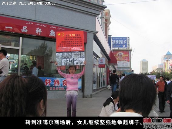 随后我们来到准噶尔商场,经过苏宁保安的几次驱赶和惊吓,我问女儿:“累吗?害怕不害怕?”,女儿摇摇头,随即拿起牌子高高地举了起来。就在那一刻,她脸上突然露出自信的微笑,眼神中也透出了一股坚强。我的眼睛也突然有些湿润,我突然感觉女儿一下长大了很多,她明白了今天为什么要这么做,她也明白了她不是一个人在呐喊。