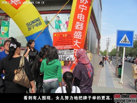 我把牌子设计成一个图文并茂的大画板,把每一个字,每一张图都一一讲解给她听。并告诉她,作为中国人,忘掉这段屈辱的历史,那是最可耻的。(可笑的是,在制作这张牌子的时候,广告公司的职员,居然不知道9.18是怎么回事)