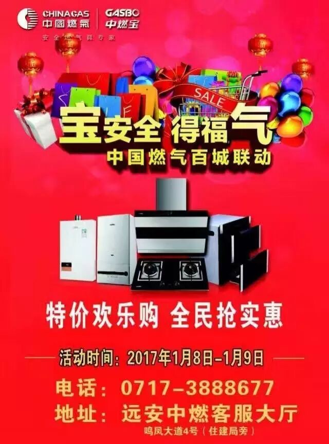 远安天然气用户福利来啦!为了回馈广大天然气用户对远安中燃的关注和支持,现推出“特价欢乐购,全民抢实惠”大型优惠活动。