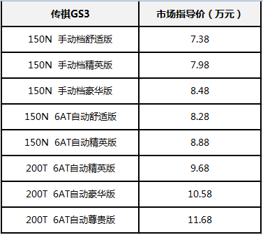 “新风潮智联SUV”GS3,以“新潮动感设计”、“畅享宽适座舱”、“前卫互联科技”、“灵动驾控乐趣”四大潮流特质,挖掘“乐趣至上”的年轻消费群,售价7.38万-11.68万元。
